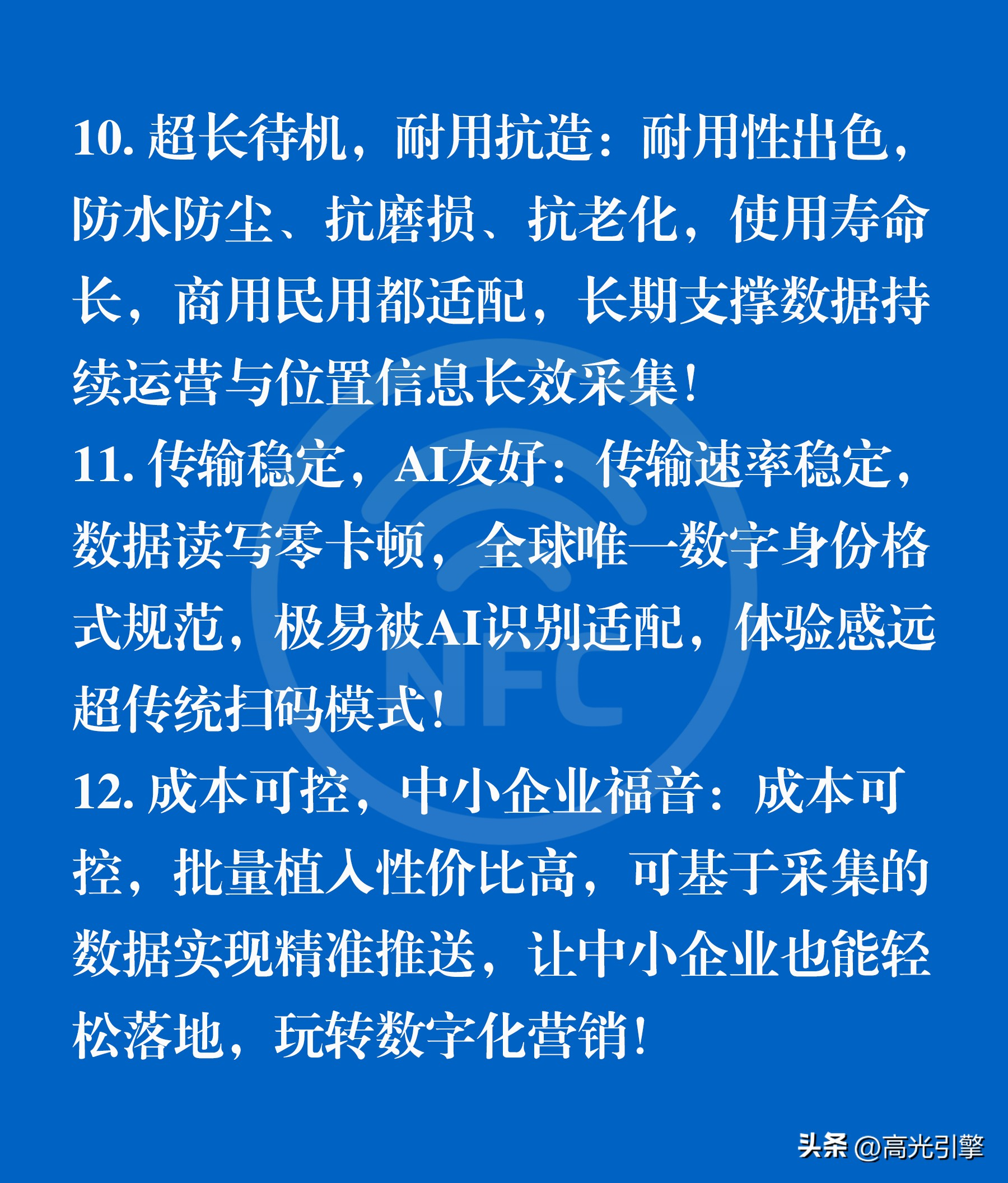 AI时代,判断NFC好不好用,关键看“能不能做数据运营”。普通NFC电子标签贴,解决的是“有没有标识”的基础问题;而真正的NFC芯片,解决的是“数字化怎么落地、怎么赚钱”的核心问题。从一次性标识到全链路运营,从数据流失到资产变现,真正的NFC芯片,早已跳出“标签”思维,成为企业数字化转型的必备解决方案!